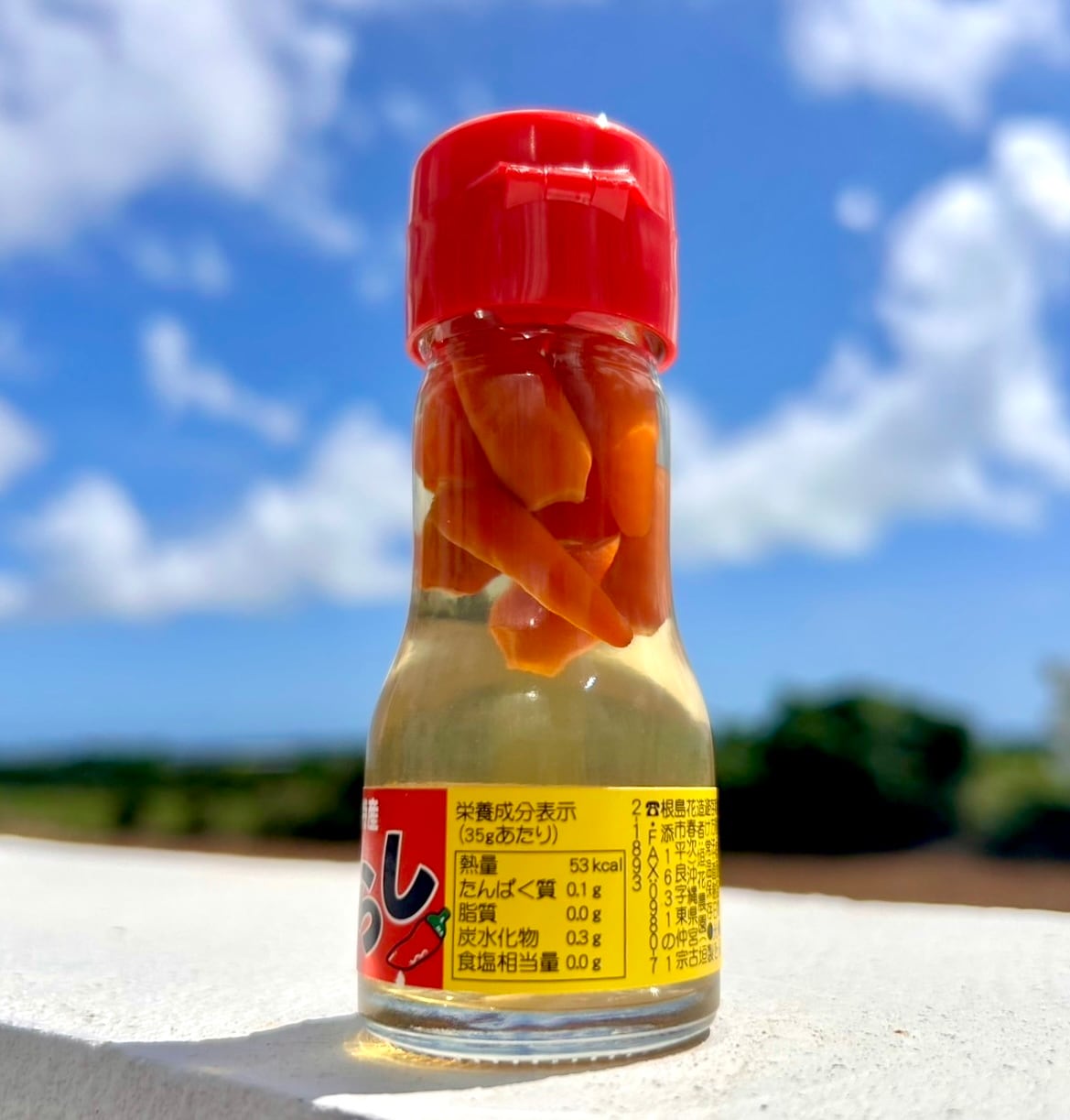 「食堂には絶対ある!」宮古島の料理に欠かせない調味料で、宮古そばには勿論、刺身やゴーヤーチャンプルーなどの郷土料理にちょい足しして使用しています。
